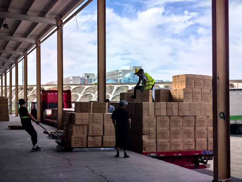 6月2日,走进霍尔果斯陆港国际物流园,各类货物整齐摆放,霍尔果斯捷安国际物流有限公司员工正在对一批来自广东的百货清点装箱,即将发往哈萨克斯坦。