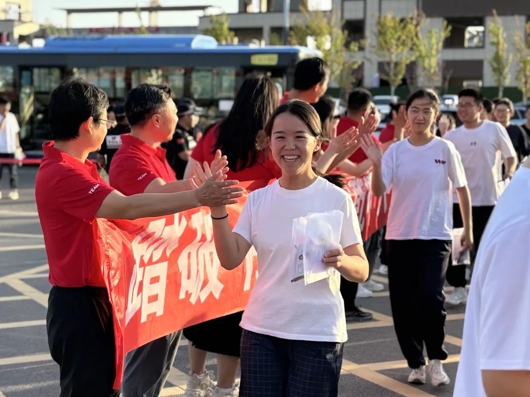 上午8时,四师第一中学考点外,印有“踏破书山,执笔定乾坤”的红色横幅在微风中轻扬。考生们三两结伴,手挽手笑着冲过横幅,对这场人生大考充满信心。送考教师们身着统一的红色T恤,在人群中格外亮眼。红色是“开门红”的寓意,也是他们藏在心底的祝福。