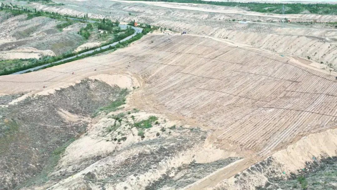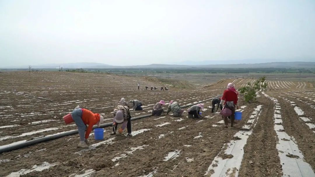 6月6日,在沙湾市翠山,工人们正在进行中药材的种植。今年,沙湾市通过招商引资引进北京市一家药企,由该企业负责在翠山实施中药材种植及药旅融合项目。该项目一期计划建设中药材苗圃繁育基地3000亩,目前正在全力推进种植进度。