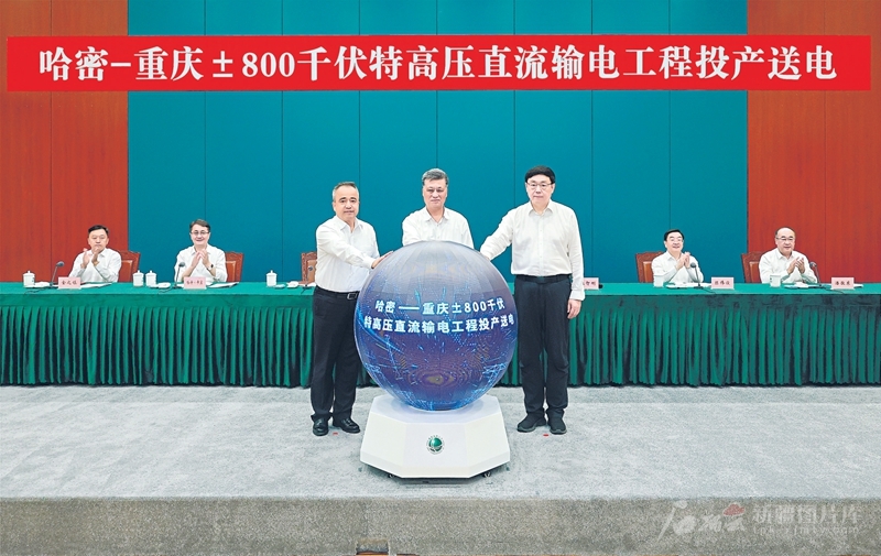在党中央坚强领导下,在国家有关部委、有关省市和中央企业大力支持下,经过近两年不懈努力,“疆电外送”第三通道——哈密—重庆±800千伏特高压直流输电工程近期顺利建成并完成调试。6月10日上午,新疆和重庆同步举行活动,正式启动工程投产送电。自治区党委书记马兴瑞、重庆市委书记袁家军分别在两地出席活动,热烈祝贺工程建成并共同启动投产。