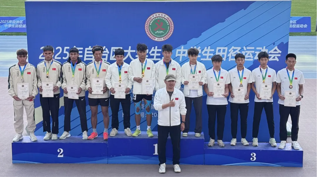 新疆应用职业技术学院田径队于2025年5月26—30日参加自治区大学生、中学生田径运动会,最终以总积分261分的成绩,获丙组团体冠军(第一名),共获十五枚金牌,十四枚银牌和五枚铜牌的好成绩。