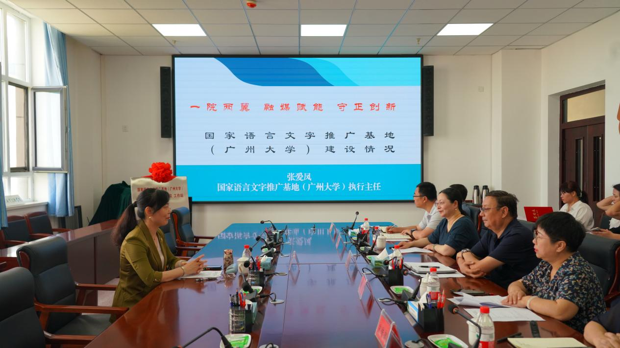 国家语言文字推广基地(广州大学)执行主任张爱凤教授详细介绍了基地的基本框架、建设成效和未来发展规划。她表示,以语言为纽带,贯通东西部教育资源,国家语言文字推广基地(广州大学)将全力支持新疆应用职业技术学院工作站建设,在协同育人、协同创新、培训交流等方面进一步深化合作,共同推进国家通用语言文字的普及和推广工作,为服务新疆经济社会发展、促进民族团结进步作出积极贡献。