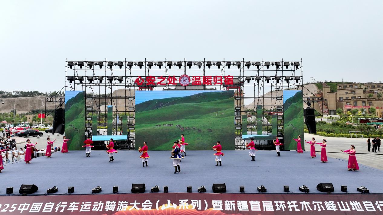 6月15日,2025中国自行车运动骑游大会(山系列)暨新疆首届环托木尔峰山地自行车越野赛完美收官,这是闭幕式演出。(赵新昌 摄)