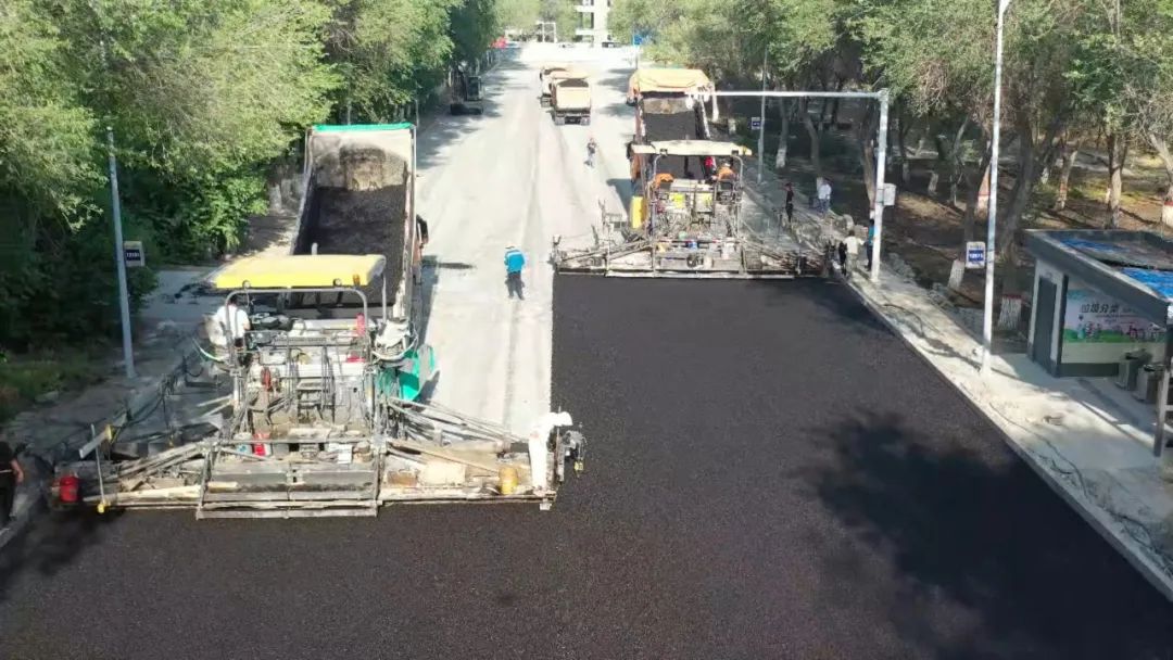 连日来,沙湾市市政道路建设项目施工方积极组织人力和机械,“按下”项目建设“加速键”,不断抢工期、保质量、抓进度,推动各项目建设“进度条”不断刷新。 6月12日,在沙湾市城区塔城路等市政道路建设项目广场东路施工现场,两台大型摊铺机匀速前进,运料车、碾压机往来穿梭,工人们手拿铁铲等工具忙忙碌碌……刚刚摊铺的沥青冒着滚滚热气,整个施工现场一派热火朝天的景象。