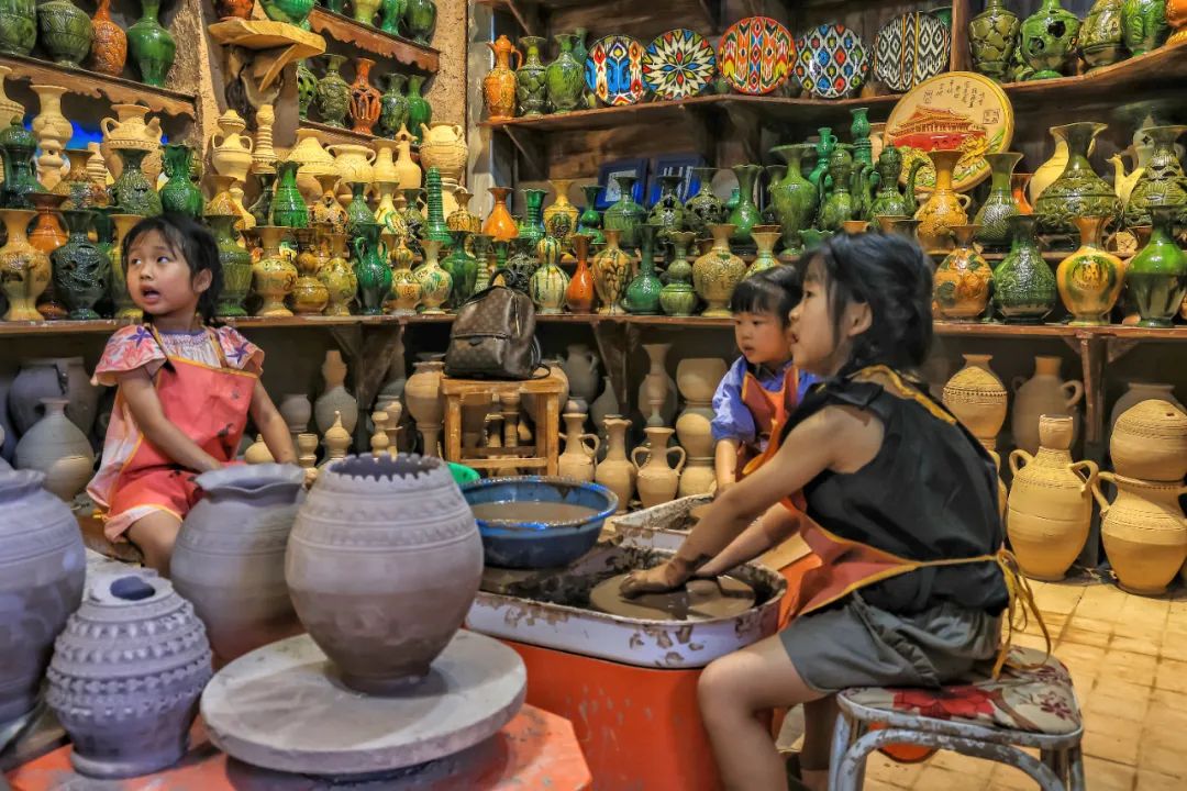 散落在各县市的15家非遗工坊成为创新孵化器。伽师县胡杨生态园内,土陶匠人玉素甫·米吉提的指尖在紫砂泥上起舞,“看这冰裂纹理,要经过十二道阴干工序”。玉素甫·米吉提说。在他身后的展架上,《百鸟朝凤》木雕在整块胡杨木上振翅欲飞,翎羽纤毫毕现。这种“非遗+景区”模式,让传统技艺在自然怀抱中获得新生。