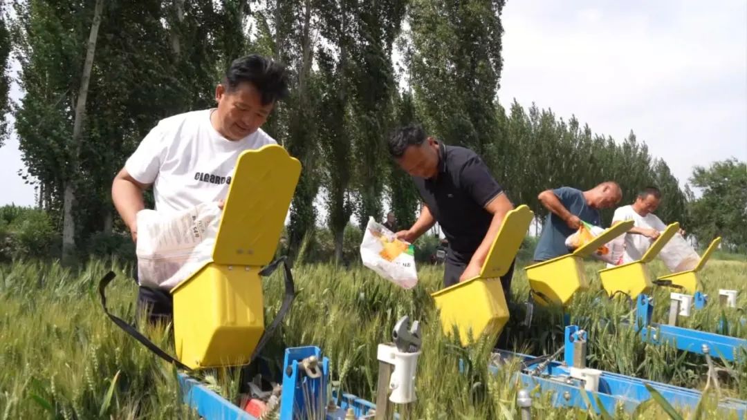 小麦套种玉米新模式是在小麦生长后期(一般在小麦灌浆期),于预先规划好的预留玉米种植行中适时播种玉米,使小麦和玉米在同一块土地上共生一段时间。待小麦收获后,玉米进入快速生长阶段,完成整个生长周期并收获。这种模式打破了传统单一种植的局限,充分利用了土地的空间和时间资源,实现了“一地两作、一季双收”,大幅提升土地复种指数和单位面积产出。为了推动该种植模式落地沙湾,沙湾市农业农村局组织农业技术人员全程跟踪技术指导,随时解决农户在种植过程中遇到的问题。