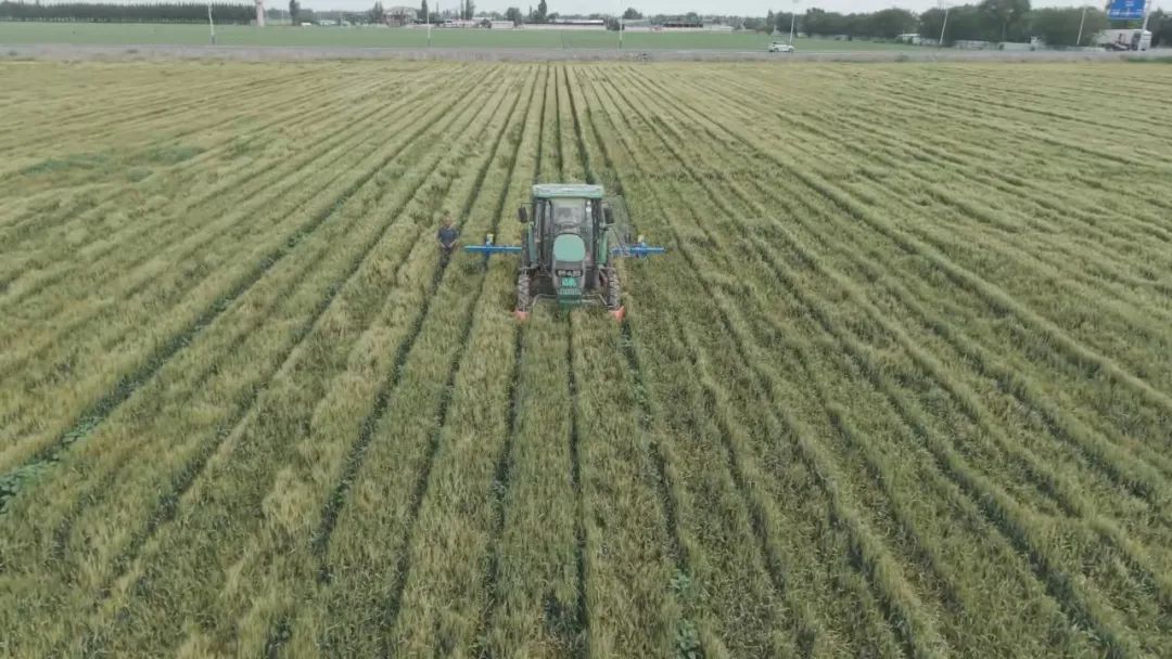 沙湾市双泉农业农民专业合作社理事长何洪涛说:“像今年我们总共拿出来了390多亩地种这种模式,这种模式小麦的产量基本上算是稳产,这个玉米跟春播玉米的产量都要接近,完完全全实现了‘一季两收’。按照去年的产量,小麦每亩收个600多公斤,玉米也在500-600公斤,每亩地收益应该能增加800块钱左右。”