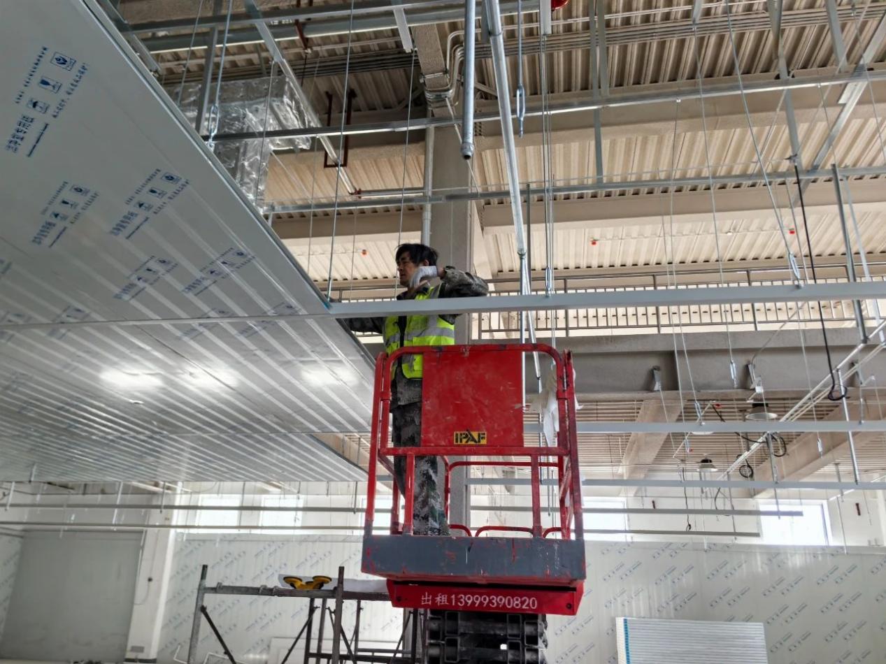 (新疆创曜辉新材料有限公司光伏膜生产线项目正在进行吊顶装修)