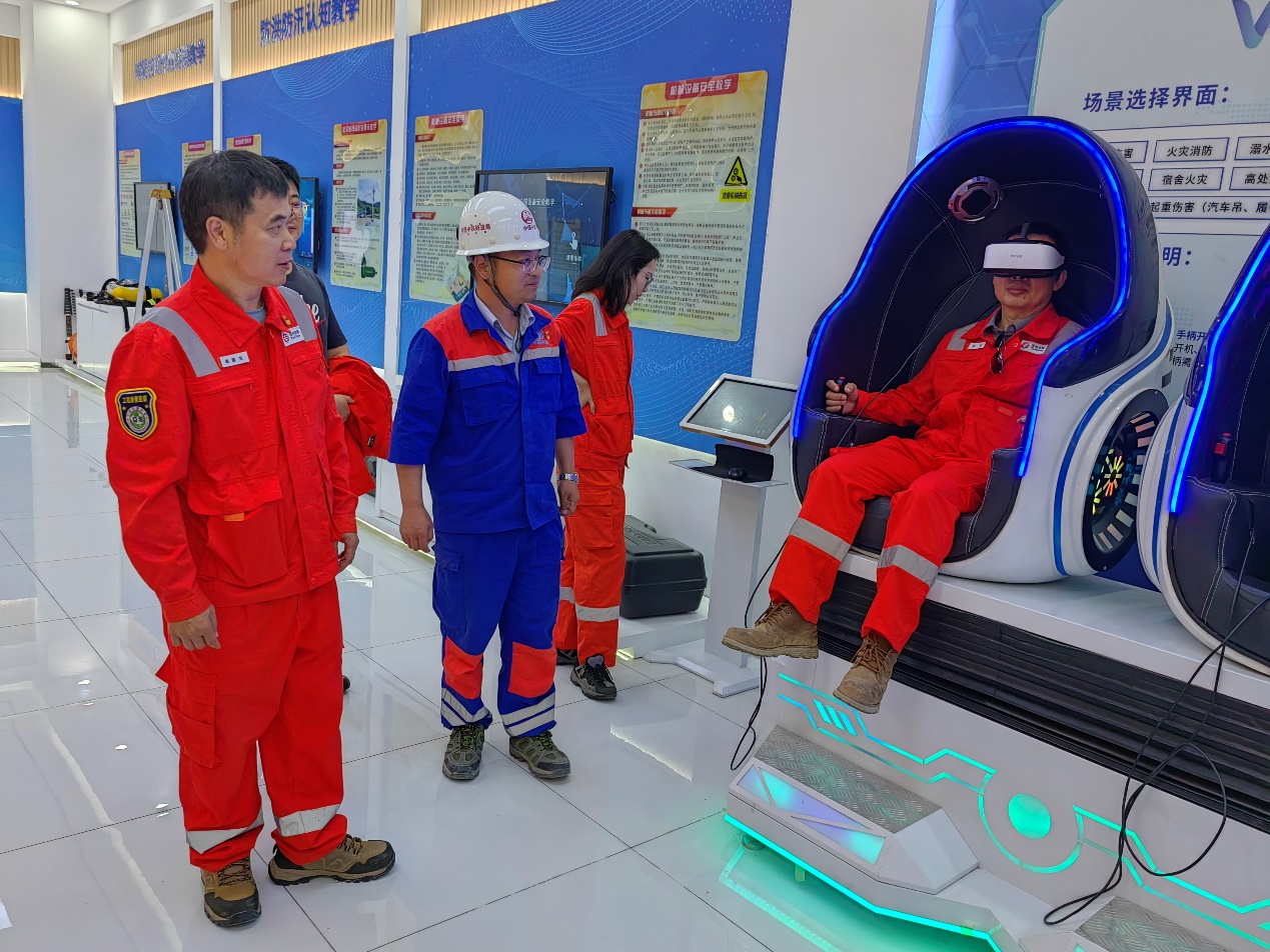 图为西部管道公司项目管理中心员工参加安全体验馆事故模拟VR体验活动。(摄影:张磊)