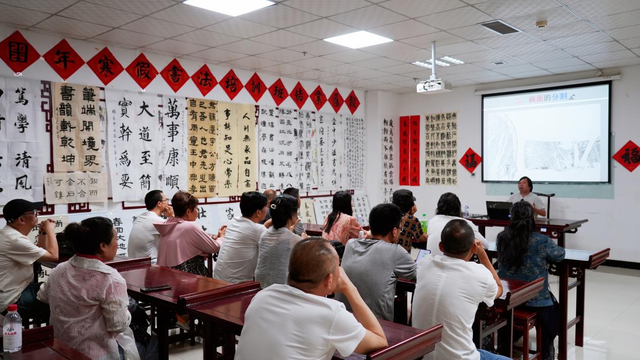 6月19日,“天山缘 婺江情”金华温宿文艺交流系列活动—美术公益讲座在阿克苏地区文化馆举办。(马培亮 摄)