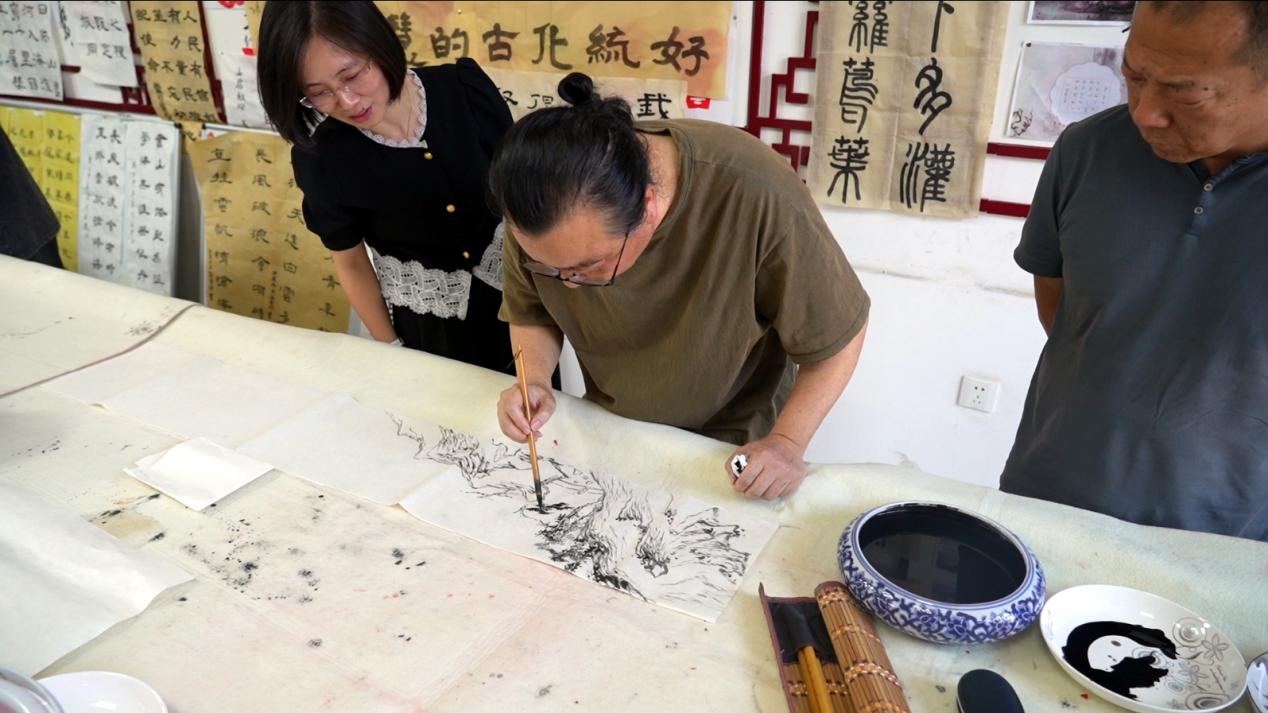 随后,浙江艺术家现场进行创作,与阿克苏地区本地艺术家开展交流,金华书画艺术家们在画纸上一笔一墨勾勒出生动线条,并讲解创作思路与灵感,参加活动的本地艺术家们也参与到现场创作之中,通过现场的实践创作为这次交流活动赋予了更加丰富的内容。