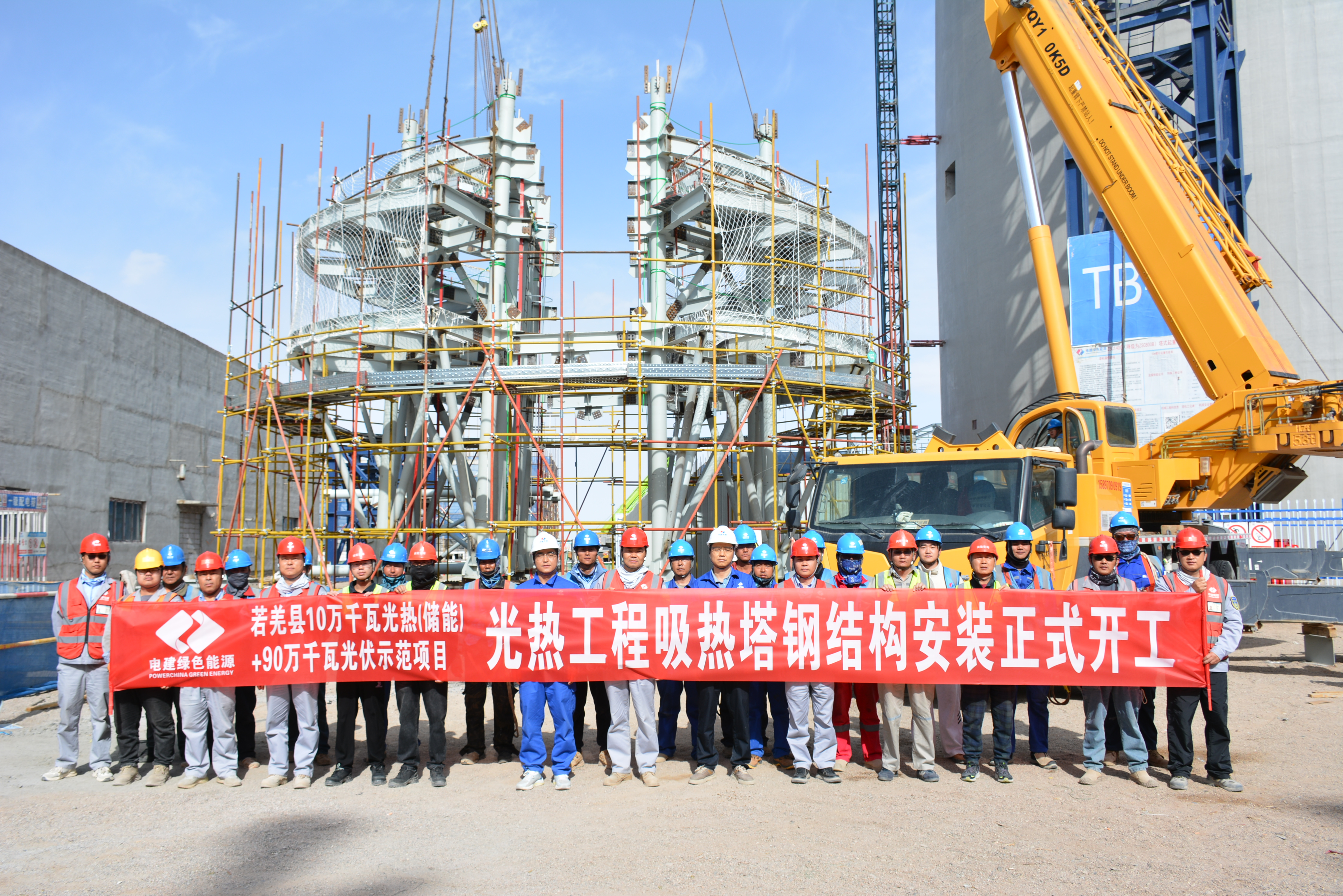 6月22日上午10时,若羌县10万千瓦光热(储能)配套90万千瓦光伏发电项目中电建若羌光热EPC项目部施工现场,第一榀钢结构缓缓升起,标志着项目吸热塔塔顶钢结构吊装工作全面展开,为项目建设迈出关键一步。