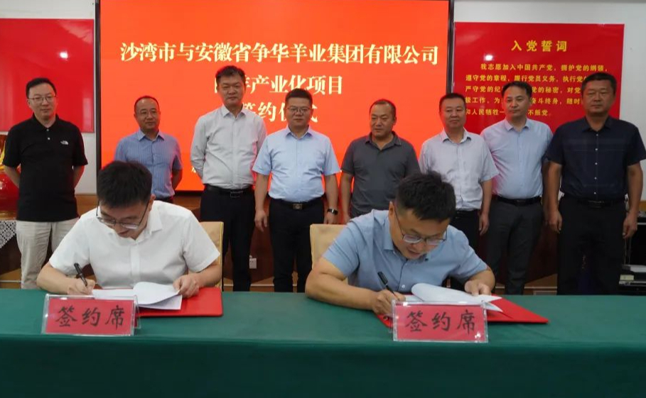 6月24日,塔城地区沙湾市与安徽省争华羊业集团有限公司举行肉羊产业化项目签约仪式。市委书记曾梁出席签约仪式并讲话,市委常委王洪杰、市委常委、常务副市长蒋亚东,安徽省争华羊业集团有限公司董事长陈争上等企业相关负责人和市直有关部门(单位)负责人参加签约仪式。