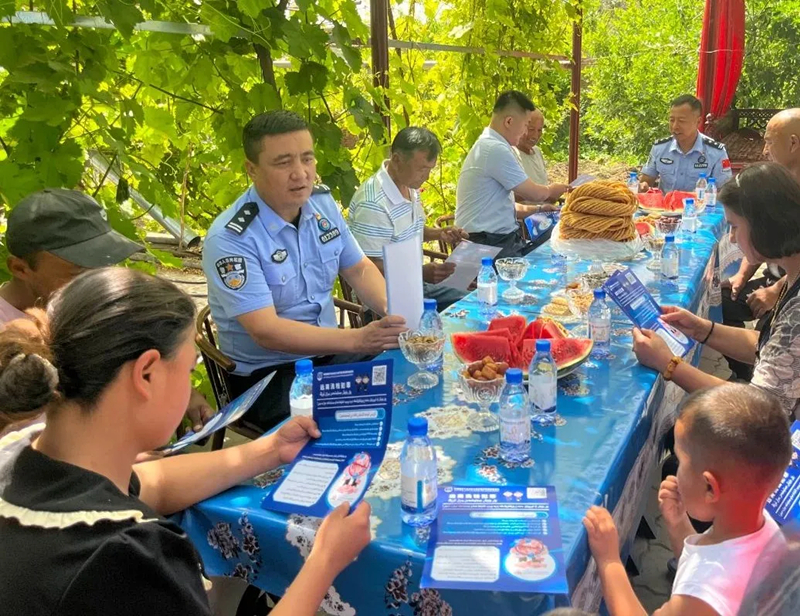 为切实提升辖区群众防范意识,有效预防和减少电信诈骗案件的发生,伊车嘎善边境派出所联合农商银行,深入村民家中,通过庭院座谈的方式开展反诈宣传。
