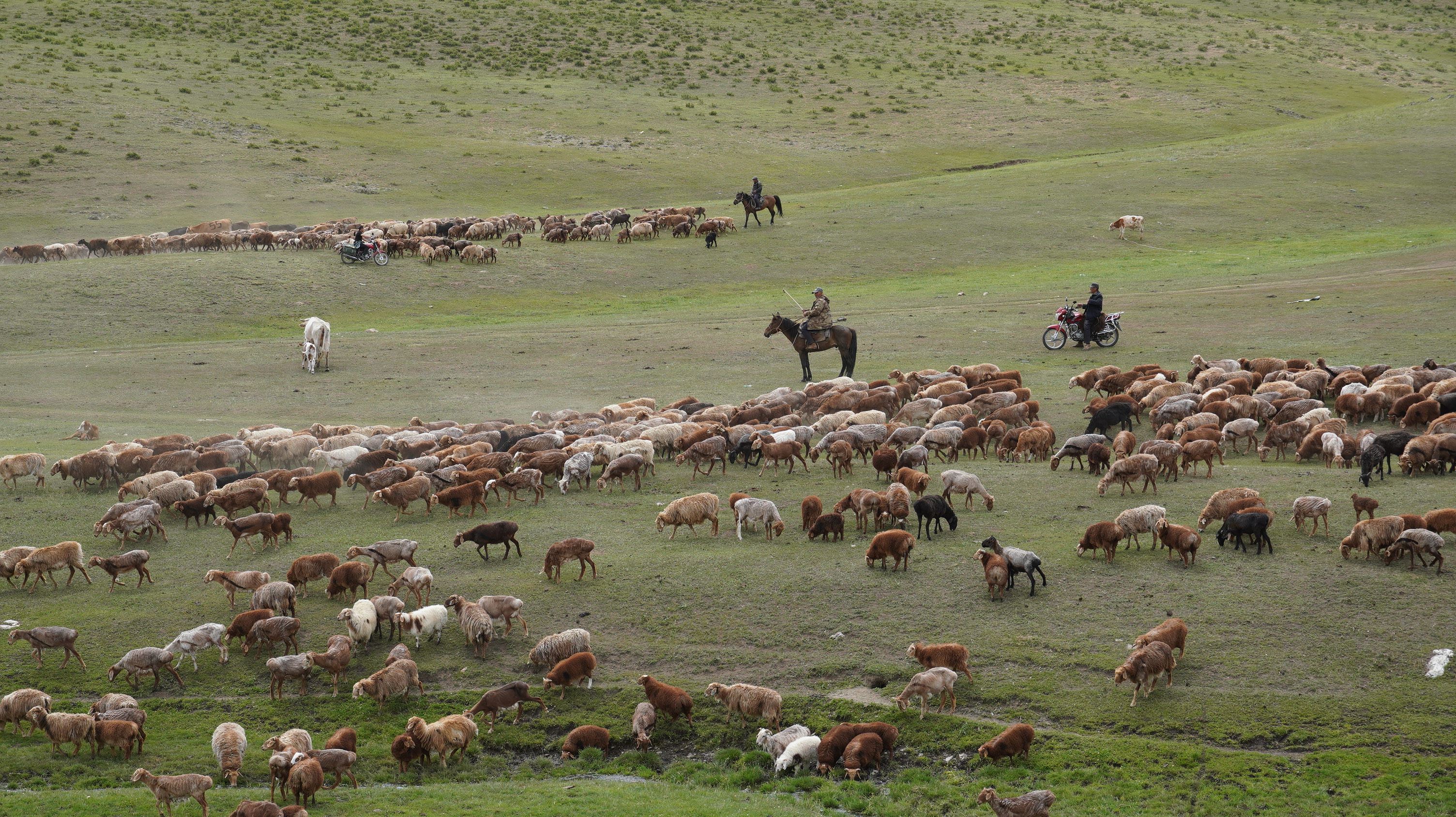 6月21日,由当地旅行社组织的百辆自驾车队,从青河县城出发,沿G331线与上万牛羊同行,到强罕生态牧场观看了当地牧民举办的刁羊友谊赛、帮牧民骑马放羊“迁徒”、走进毡房吃牧家饭等沉浸式体验牧民转场生活。