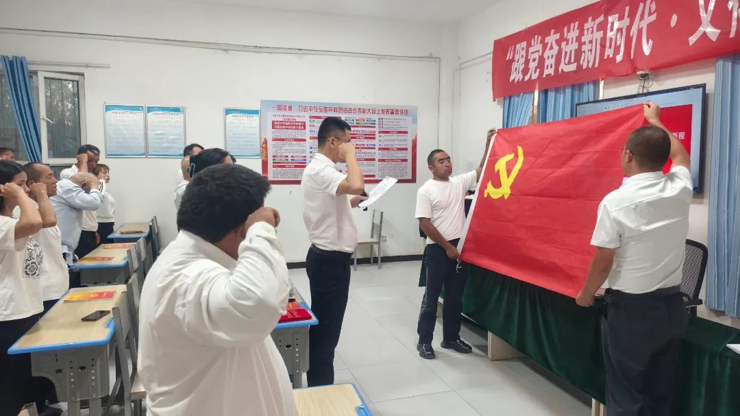 在鲜红的党旗下,全体党员重温了入党誓词,铿锵誓言彰显了全体党员矢志不渝跟党走的坚定信念,有效强化了党员的身份认同与责任担当。