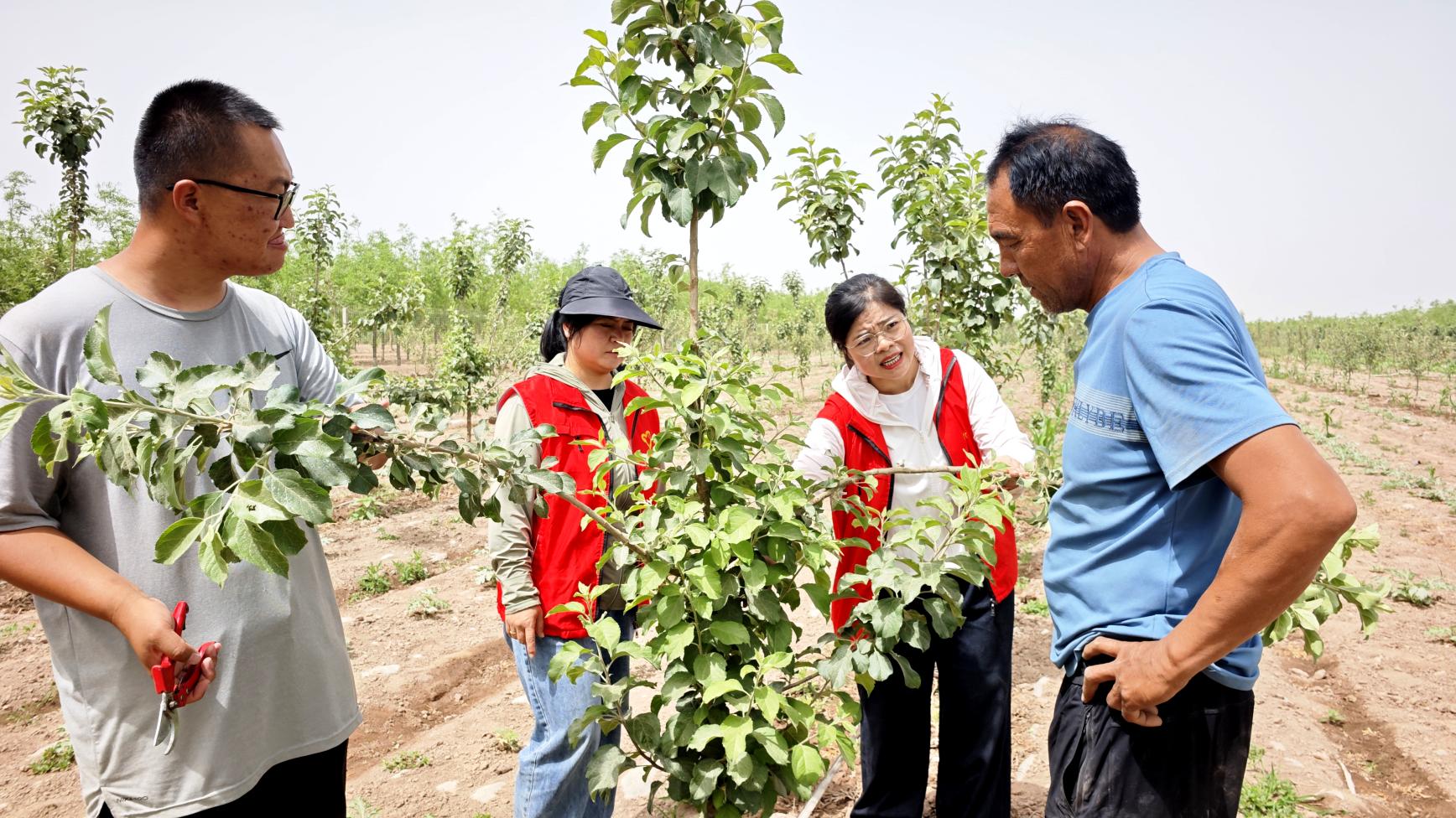 发现问题只是第一步。专家当场“开方”,更手把手“抓药”。在果园里,肖莉娟和她的团队现场示范正确的修剪和拉枝手法,耐心指导果农操作。“以前修剪全靠感觉,剪多了怕减产,剪少了又担心树疯长,心里实在没底。”阿克苏地区温宿县财政局驻其曼村工作队队员达吾然·迪力木拉提在专家指导操作后感慨道,“专家讲得透、教得细,这下知道该怎么做了,对管理好果园更有信心了。”