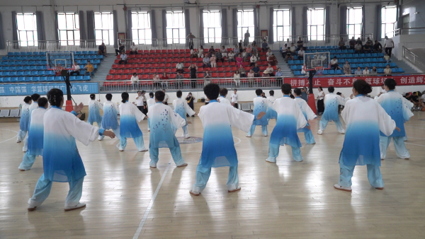 沙湾市2025年和美乡村篮球大赛(村BA)启动仪式结束后,随后开始的太极拳表演 沙湾市融媒体中心记者 常乙 摄