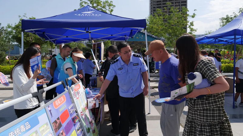 “看着像可乐罐的电子烟,五颜六色的跳跳糖、奶茶,这些看似常见的零食饮料,可能是伪装的新型毒品……”6月25日,霍尔果斯市公安局禁毒办以“健康人生,绿色无毒”为主题,联合10余家成员单位在联检楼广场开展“6·26”国际禁毒日宣传活动,以法治之力织密防毒网络,营造全民禁毒的浓厚氛围。