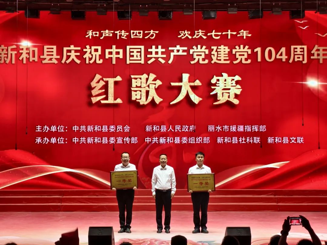 为庆祝中国共产党成立104周年、新疆维吾尔自治区成立70周年,6月27日,新和县举办“和声传四方欢庆七十年”暨庆祝中国共产党建党104周年红歌大赛,旨在以红歌为纽带传承红色基因,在歌声中凝聚力量,在旋律里奏响团结乐章,展现新时代新和的蓬勃生机。