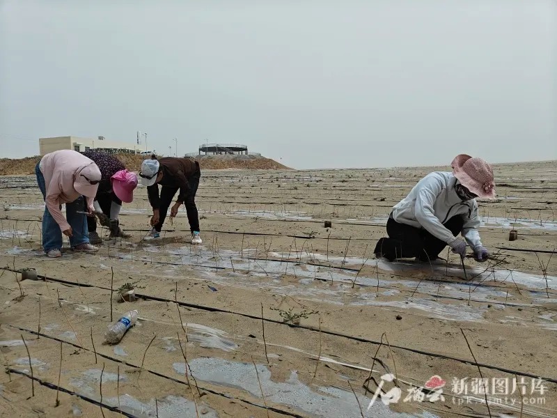 6月13日,工人正在栽种蛋白桑苗。石榴云/新疆日报记者张磊 摄