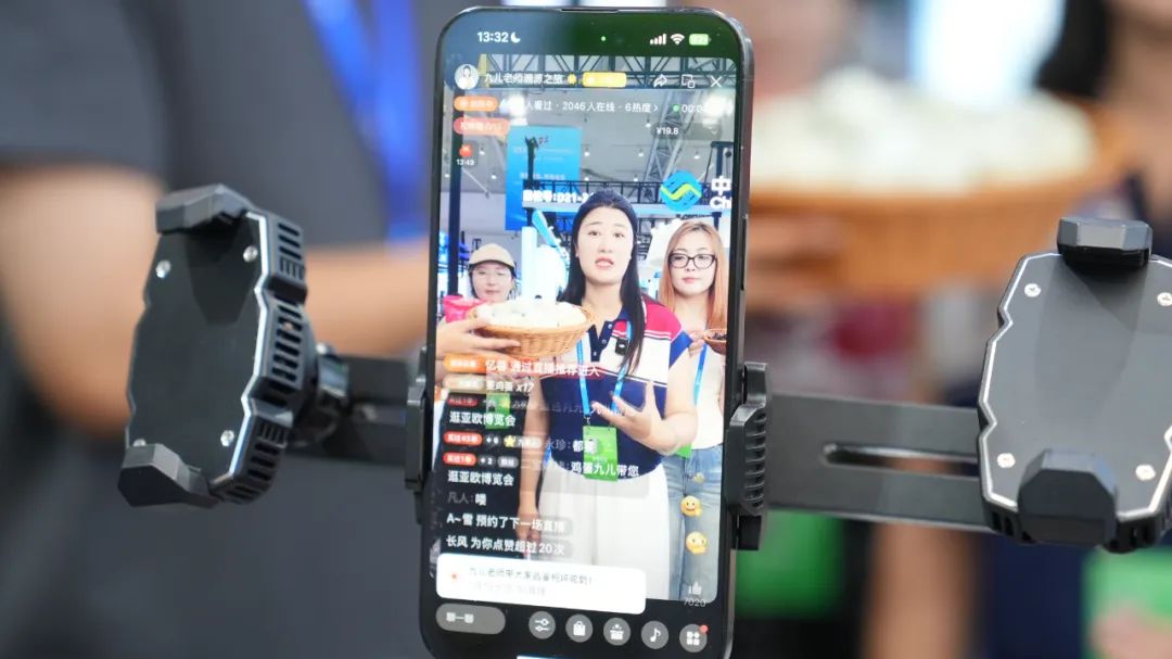 “朋友们看过来!这款新疆蜂蜜采自天然花田,口感清甜,富含多种营养成分!”在中达世佳(新疆)跨境电商贸易集团有限公司展位,工作人员提前备足新疆特色农产品,专业主播手持产品,一边生动细致地介绍功效,一边分享食用窍门。活泼有趣的讲解迅速点燃直播间的氛围,弹幕不断滚动,点赞与咨询声此起彼伏,热闹非凡。