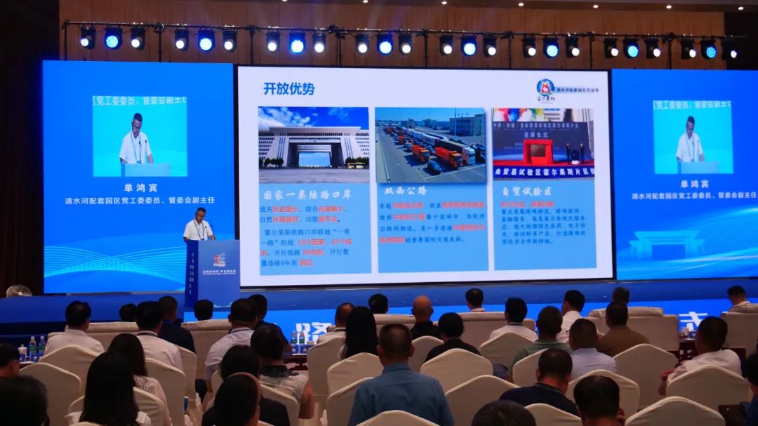 2025商博会期间,以“丝路新机遇 伊企赢未来”为主题的伊犁州招商引资专场推介会暨集中签约仪式圆满举行。霍尔果斯市委常委,南部产业园区党工委书记、管委会主任樊剑章向来自五湖四海的客商热情介绍霍尔果斯独特的区位、口岸、政策、开放等优势,重点推介了家电组装出口、汽车组装加工、有色金属制造加工、农业整机组装、日化产业园加工五大项目。霍尔果斯经济开发区清水河配套园区党工委委员、管委会副主任单鸿宾则从园区基础设施建设、营商环境优化等方面着手,诚挚邀请各位企业家投资霍尔果斯,共享发展新机遇,携手共创美好未来。