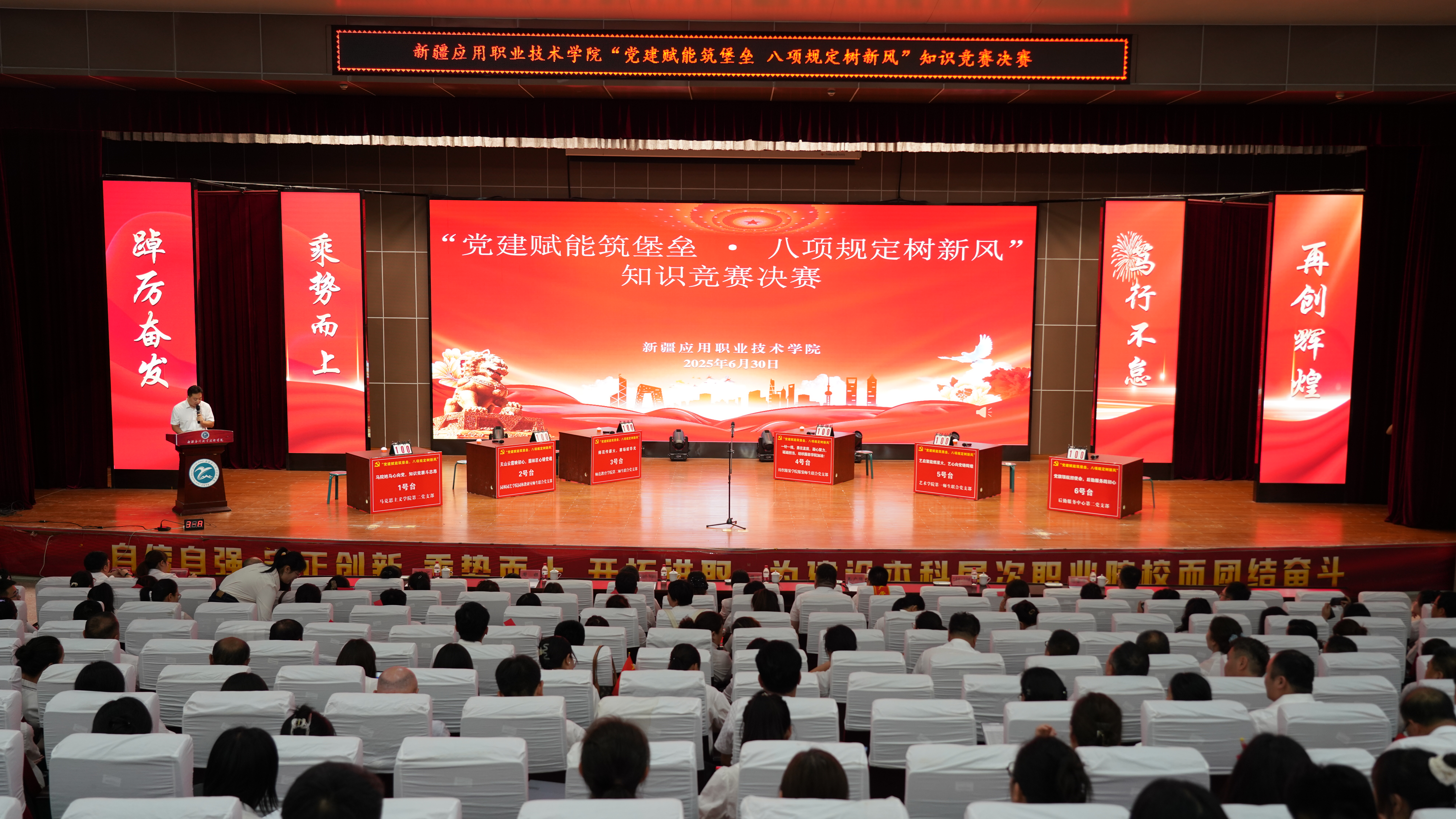 在全党上下深入学习贯彻党的二十大精神,扎实开展中央八项规定精神学习教育的关键时期,新疆应用职业技术学院于2025年6月30日成功举办第五届党建文化节“党建赋能筑堡垒 八项规定树新风”知识竞赛决赛。此次活动紧扣中央八项规定精神学习教育核心要义,通过“学、赛、践”三维联动,推动纪律规矩内化于心、外化于行,为涵养校园清朗政治生态注入强劲动能。