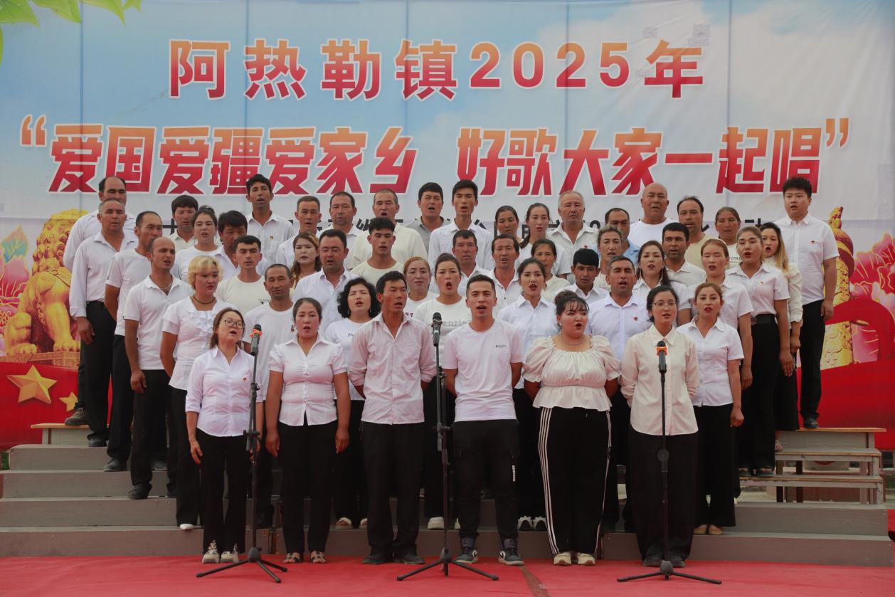 颁奖仪式后,当《没有共产党就没有新中国》那熟悉的激昂旋律再度奏响,整场活动达到了最高潮。镇党委书记祁金平一声“大家一起唱!”的号召,如同点燃了燎原的星火。评委、获奖者、未获奖的村民、镇上的干部、闻讯赶来的各族群众,不分彼此,全体肃立。白发苍苍的老者、朝气蓬勃的青年、稚气未脱的孩童,两千多双眼睛齐聚一处,两千多双手打着拍子,两千多个声音汇聚成同一首歌!这歌声不再是简单的合唱,它是信仰的共鸣,是发自心底的誓言,是阿热勒镇各族儿女对党、对祖国、对新疆、对家乡最深沉、最炽热的爱的集体迸发!歌声穿透夏日的夜空,久久不息,为这场精彩绝伦的文化盛宴画上了最圆满、最震撼的句号。