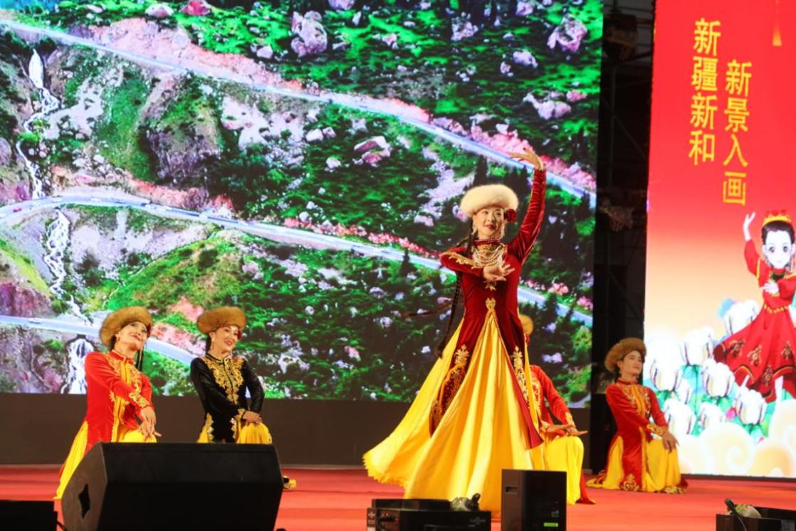 在新和县活动现场,晚会在县文工团演员表演的舞蹈《胡旋舞》中拉开序幕,灵动的舞姿瞬间点燃现场气氛。
