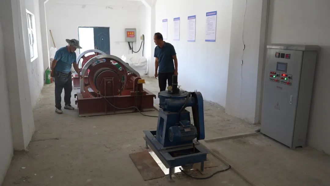 工作人员在沙湾市窝巴特渠首检查启闭机运行情况(段江玺 摄)