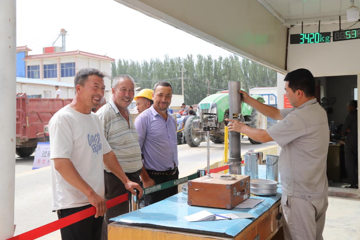 阿克苏良信粮油集团阿热勒镇粮站工作人员艾力·依斯坎达尔介绍:“我们严格依据国家标准和收购流程操作,确保入库粮食质量达标、数量准确。广大农民朋友送粮积极性很高,给予了我们大力支持。截至今日,我们已完成900吨冬小麦收购任务。根据当前进度,预计7月3日前可顺利完成全部收购目标。后续我们将继续坚守岗位,履职尽责,并持续优化服务,为农民朋友提供更便捷高效的售粮环境。”