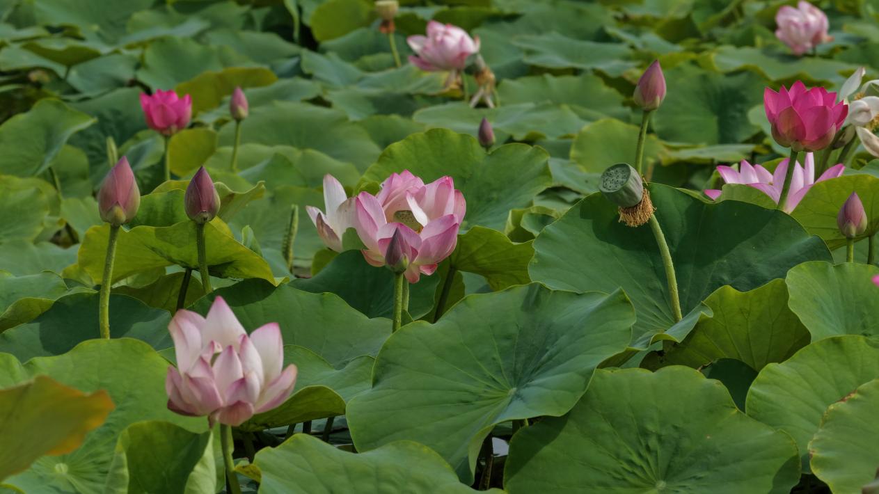 碧波荡漾的水面上,田田荷叶像翠色伞盖铺展开来。娇艳的荷花点缀其间,有的粉若天边云霞,有的洁白似冬日初雪。满池碧叶在徐徐清风中摇曳生姿,清香四溢,引得众多游客纷至沓来。他们或在岸边驻足,用相机定格这绝美的画面;或泛舟池中,在荷香中尽享夏日的清凉与惬意。