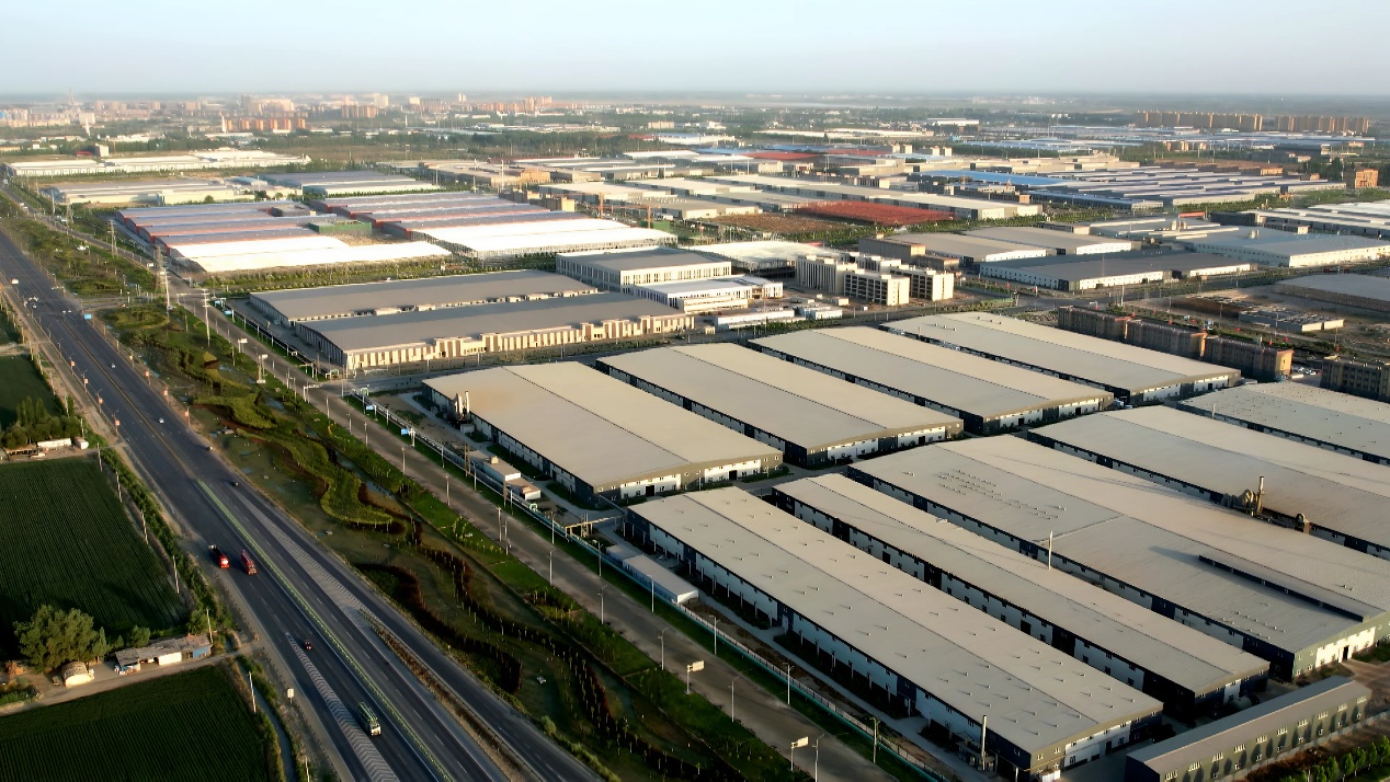 阿拉尔经济技术开发区一排排地标准化厂房整齐排列。江唯摄