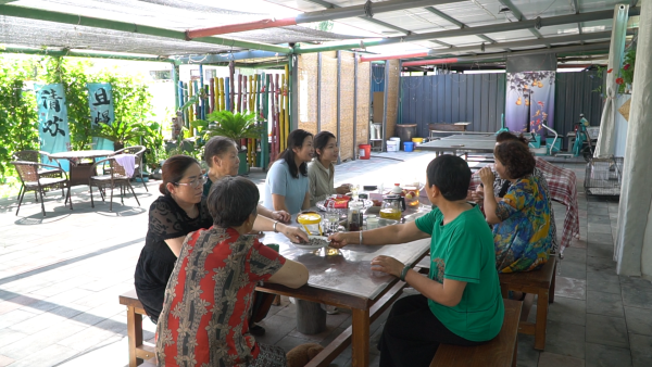白玉花化身“”绿色使者”向邻居们传授庭院打造的秘密。(图:杨翠香)