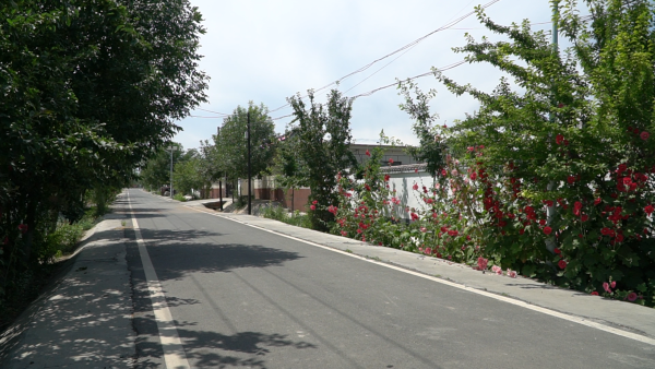 大泉乡东泉村巷道,道路平整,绿树繁花夹道,串联起一个个 “美丽庭院”。(图:阿那儿古丽·瓦力)曼)