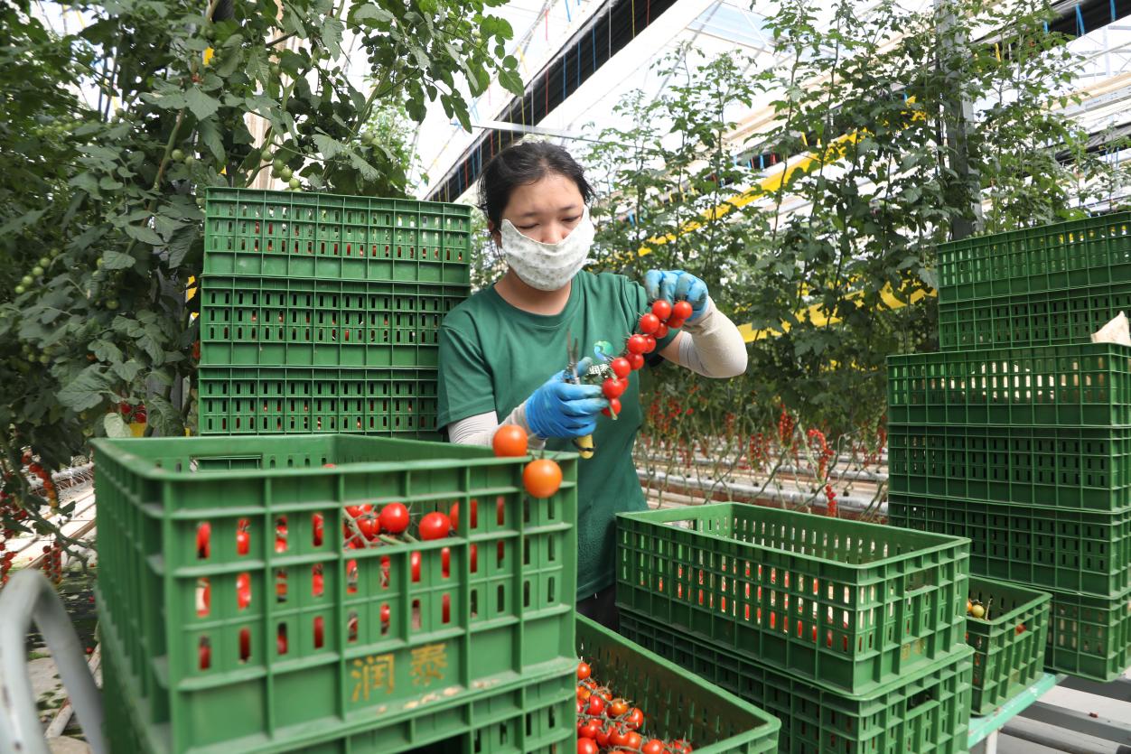 “品质是打开市场的钥匙。”润泰农业执行董事汤跃介绍,今年,“渴口可柿”番茄与“好食六六”樱桃双双通过中国绿色食品发展中心审核,获绿色食品A级认证,这标志着产品从源头就严守绿色标准。种植过程中,企业采用生物防治、水肥一体化、熊蜂授粉等环保技术,以无公害方式保障果实品质,确保每一颗番茄天然绿色、安全健康。