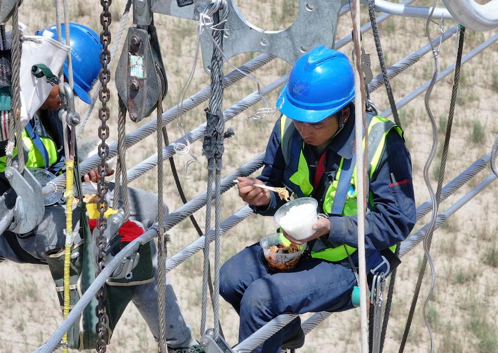 今年3月,陈林来到塔克拉玛干沙漠南缘,他和40多名工友一同承担该线路的部分架线任务。