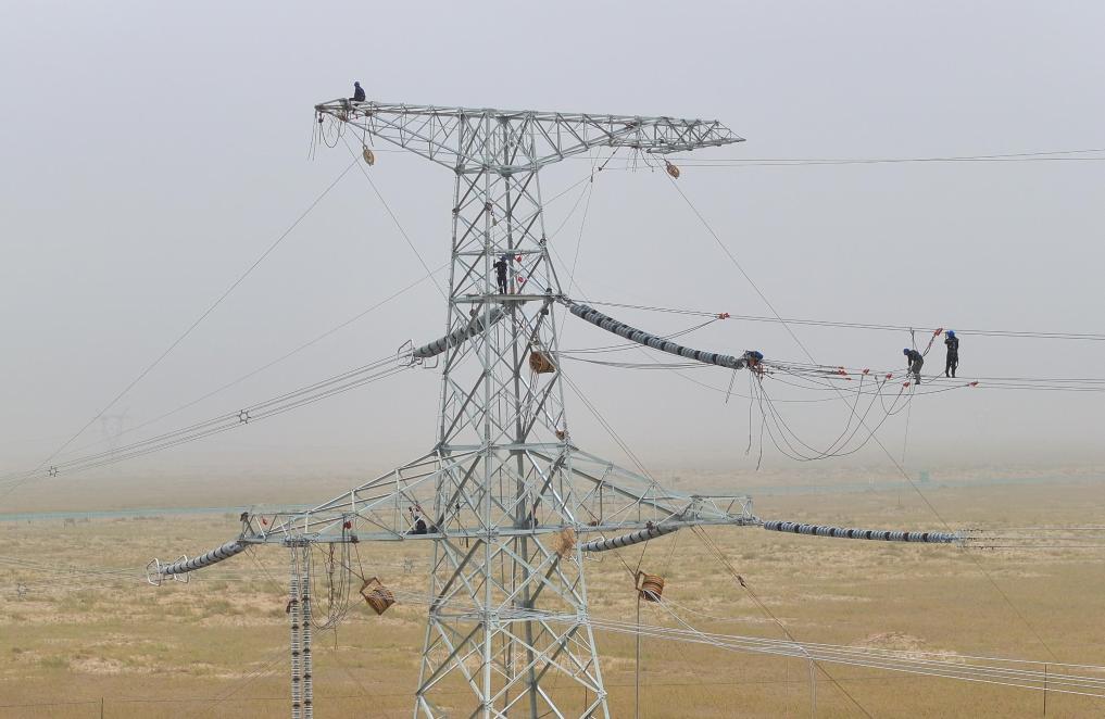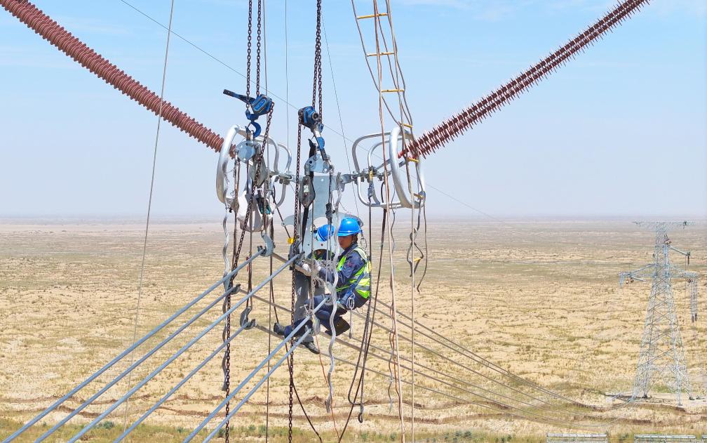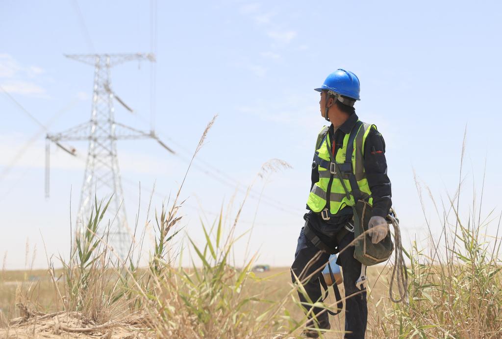 他的脚下,是望不到边的沙漠戈壁,他的身后,总长4197公里的环塔里木盆地750千伏输变电工程即将全线贯通。