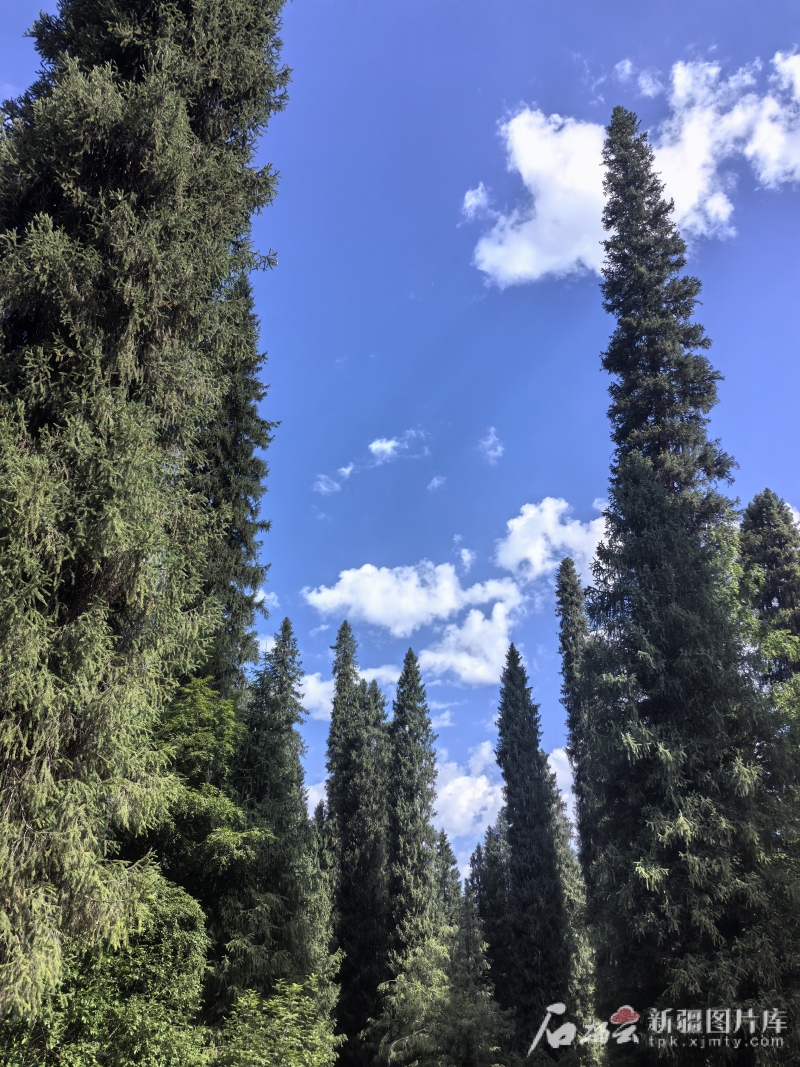 7月3日,在新疆西天山国家级自然保护区林区,雪岭云杉郁郁葱葱。赵悦 摄