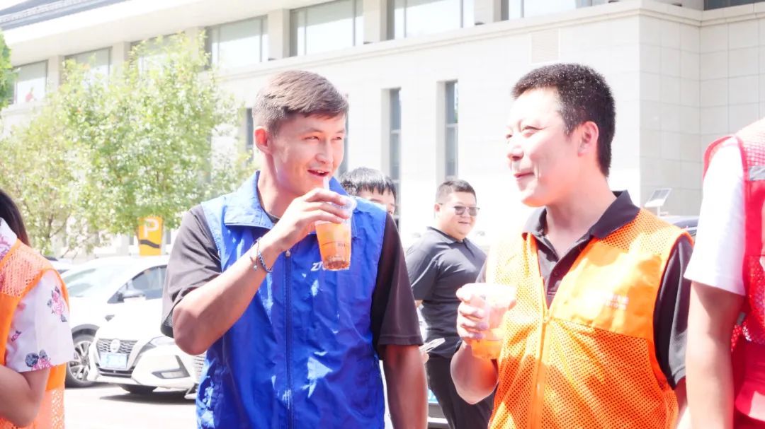 活动现场,工作人员为快递小哥、外卖骑手送上精心准备的冰镇绿豆汤以及防晒冰袖、藿香正气水和湿纸巾等防暑降温用品,对大家恪尽职守、辛勤付出表示感谢,并叮嘱他们在高温天气做好防暑降温,安全文明出行。