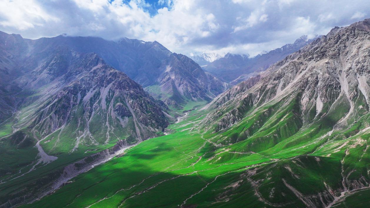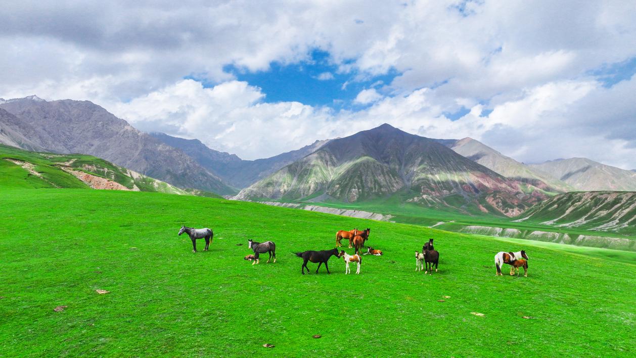 盛夏七月,位于新疆阿拉尔市的四团天山牧场迎来了一年中最动人的时节,这里绿草如茵,山峦叠翠,牛羊成群,构成了一幅生机盎然的草原画卷。四团天山牧场地处科克乌隆苏河与达准孜克新河之间,距离阿拉尔市约300公里。这里不仅有辽阔的草原牧场,更有蜿蜒的河流、巍峨的雪山,多样的地貌共同勾勒出令人心旷神怡的高原美景。