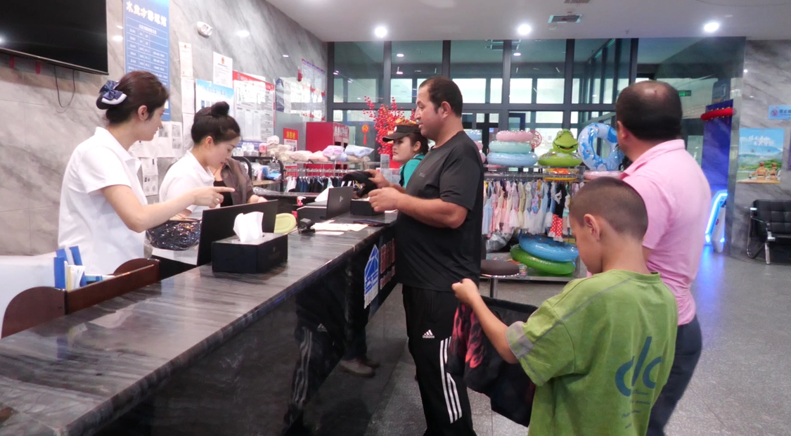 巩留县水益方游泳馆作为一项新型业态,在带动就业方面也发挥了很大作用。2023年,在巩留县人社局的推动下,位于百盛广场的水益方游泳馆挂牌成为大学生孵化基地与就业见习基地。该场馆占地2200平方米,设施齐全,可容纳200余人游泳,如今已成为年轻人成长的“实训场”。姆哈达斯·卡德尔江通过人社局推荐,来到游泳馆见习,如今已成功转为正式员工。