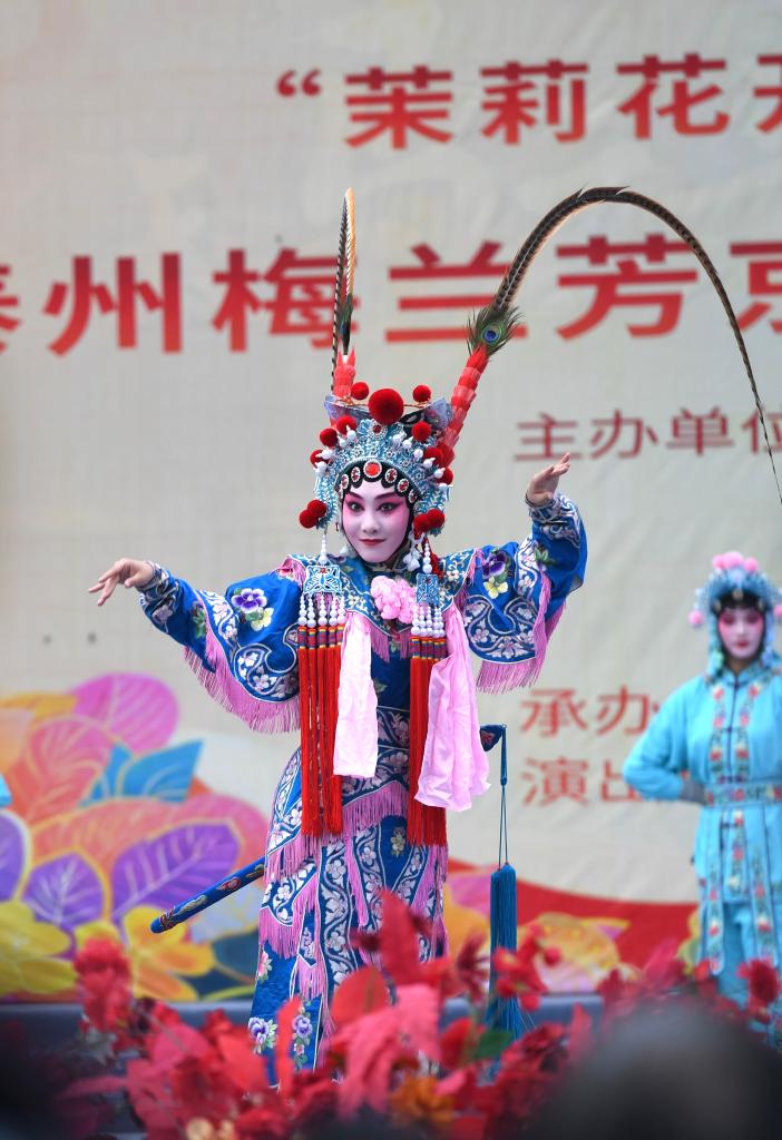 当日,在新疆昭苏县乌孙广场,江苏泰州梅兰芳京剧团"茉莉花开"文艺直通车为当地群众带来经典折子戏专场演出,上演《扈家庄》《将相和》等京剧名段。此次演出是泰州市推进文化润疆的具体实践,通过"送戏进疆"促进两地文化交流,展现了"泰昭一家亲,共谱同心曲"的深厚情谊。