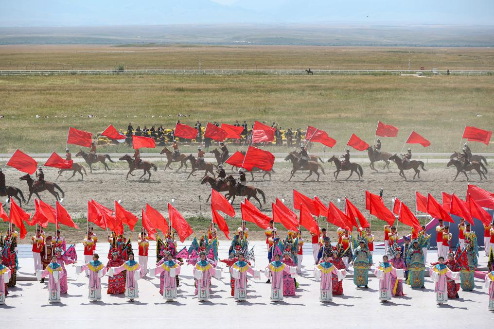 7月19日在新疆昭苏拍摄的2025新疆伊犁天马文化旅游节开幕式文艺演出。新华社记者 胥晓璇 摄