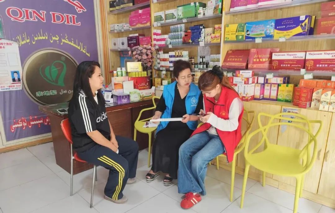 新和镇团结社区大学生志愿者穆再拜尔·艾则孜说:“能用所学知识帮助商户解决实际问题,既锻炼了自己,也为社区发展出了一份力,很有意义。”