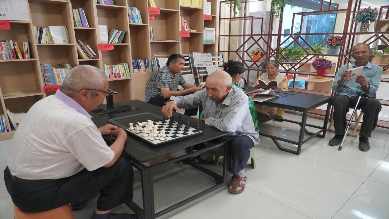 在温宿镇民生社区,老年人下棋读书。艾海提·毛勒吐尔迪 摄