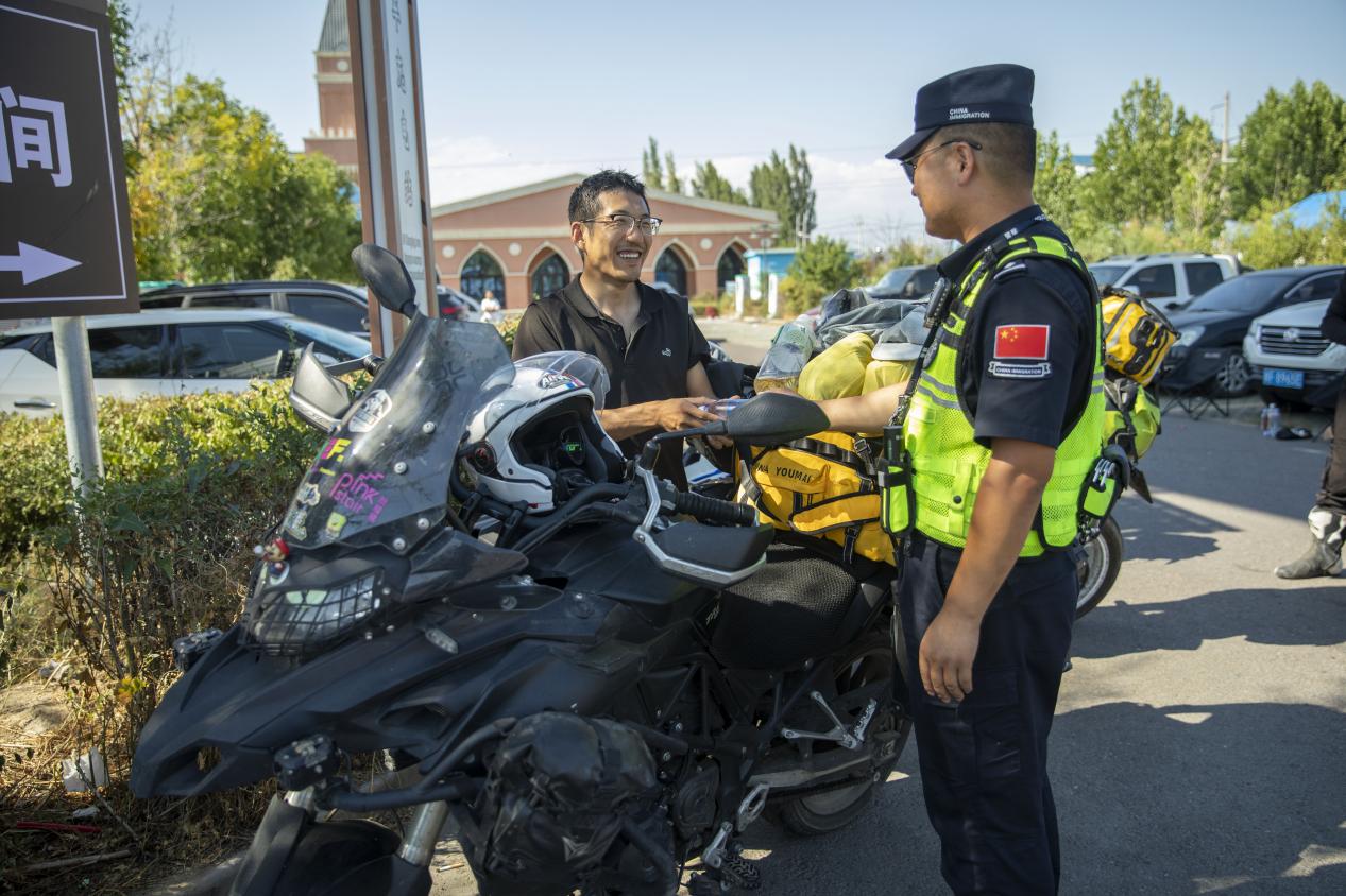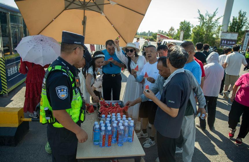 一位来自河北摩旅骑行爱好者接过民警递来的矿泉水,感激地说道:“天气这么热,你们还想着我们,这瓶水真是解渴又暖心!”对于民警们的善举,过往群众纷纷竖起大拇指,称赞民警们是夏日里的“清凉守护者”。