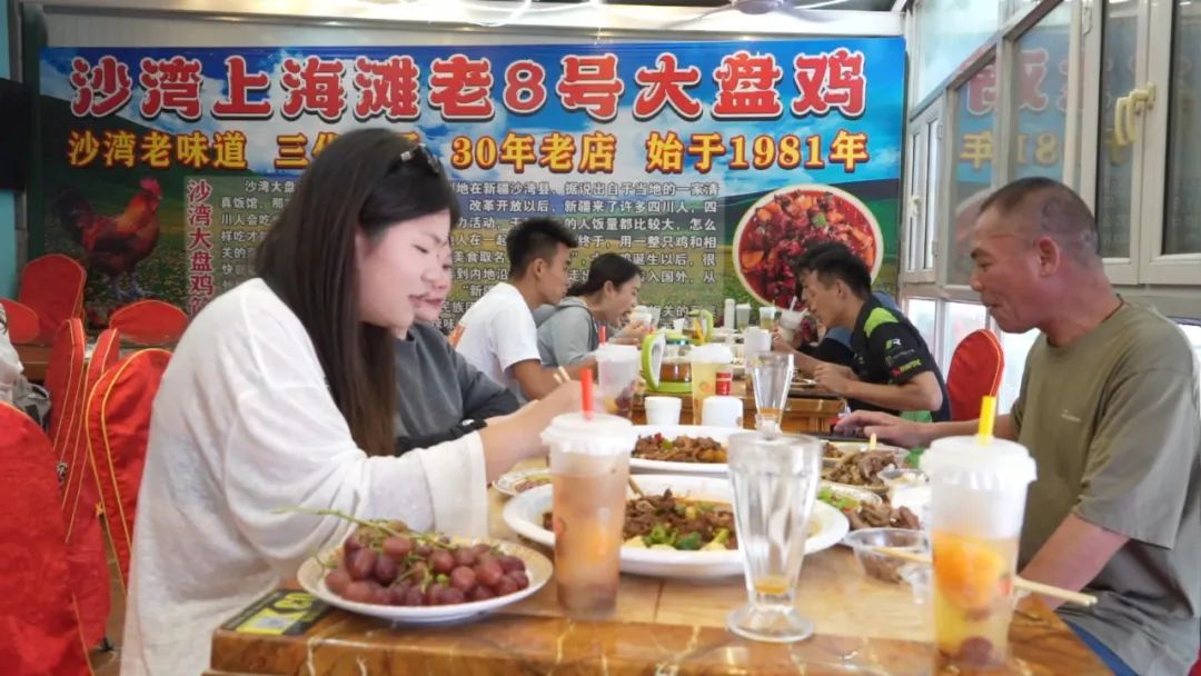 沙湾大盘美食街商区汇聚了以沙湾大盘鸡为代表的各类特色美食,一直以来吸引着众多游客前来品尝美食、感受当地文化,成为各地游客们的打卡地之一。此次道路改造完成,各商家开门迎客第一天就吸引了各地游客前来品尝沙湾特色美食。