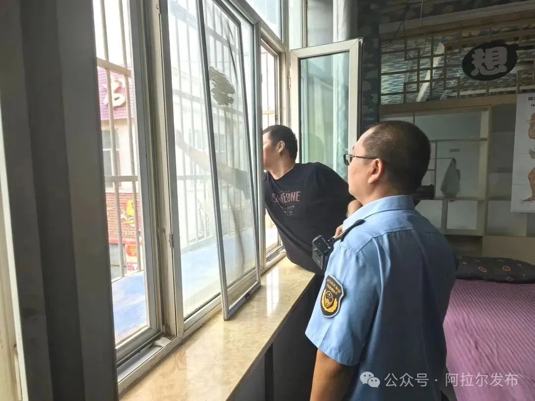 7月15日,新疆兵团第一师阿拉尔市应急管理局、城市管理局、商务局、公安局等部门联合对市区人员密集场所进行“拆窗破网”专项排查和整治。